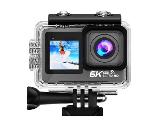 Capture every moment in stunning clarity with the 6K Action Camera – dual touchscreens, 50MP ultra HD photos, 170° wide-angle lens, EIS stabilization, 30M waterproof, WiFi-enabled, remote-ready, and supports up to 256GB SD cards.