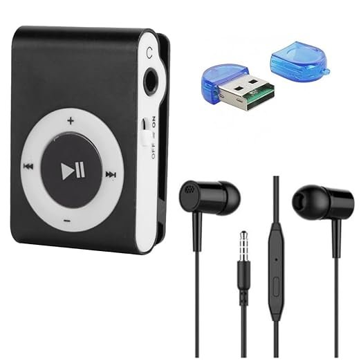 Portable Mini Metal Clip MP3 Player for Sports & Running - Supports SD/TF Card - Compact Music Player with Earphone & Card Reader (Black)